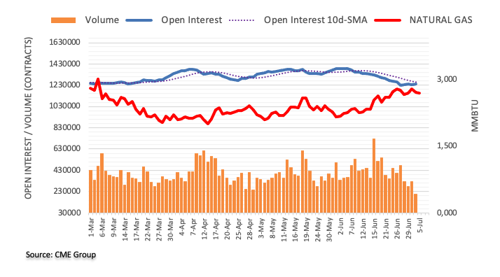 Considering advanced prints from CME Group for natural gas futures markets, open interest resumed the uptrend and rose by around 6.6K contracts at the beginning of the week. On the other hand, volume reversed the previous daily build and dropped by around 123.2K contracts.